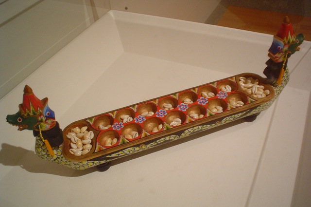 Pada awal permainan setiap lobang kecil diisi dengan tujuh buah biji. Dua orang pemain yang berhadapan, salah seorang yang memulai dapat memilih lobang yang akan diambil dan meletakkan satu ke lobang di sebelah kanannya dan seterusnya. Bila biji habis di lobang kecil yang berisi biji lainnya, ia dapat mengambil biji-biji tersebut dan melanjutkan mengisi, bisa habis di lobang besar miliknya maka ia dapat melanjutkan dengan memilih lobang kecil di sisinya. bila habis di lubang kecil di sisinya maka ia berhenti dan mengambil seluruh biji di sisi yang berhadapan. Tetapi bila berhenti di lobang kosong di sisi lawan maka ia berhenti dan tidak mendapatkan apa-apa.